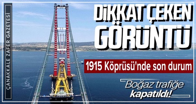 Tamamlandığında dünyanın en büyük orta açıklıklı asma köprüsü olacak 1915 Çanakkale Köprüsü’nde, tabliye blokların montajı ve kedi yollarının arasında geçişi sağlayan köprülerin sökülme işlemleri nedeniyle, boğaz tek yönlü olarak gemi trafiğine kapatıldı. Yarın ilk tabliye bloğunun, Lapseki (Asya) yakasında bulunan 318 metre uzunluğundaki kuleye getirileceği bildirildi.
