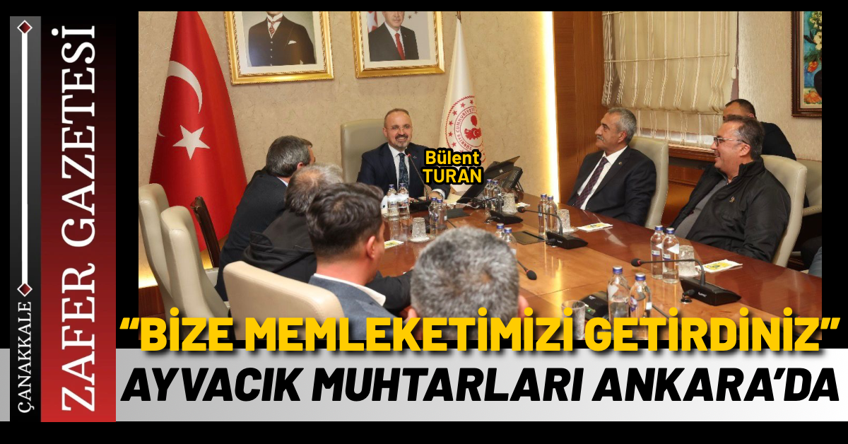 Çanakkale’nin Ayvacık ilçesinde görev yapan muhtarlardan oluşan bir heyet, İçişleri Bakan Yardımcısı Bülent Turan’ı makamında ziyaret etti. Oldukça sıcak ve samimi bir ortamda gerçekleşen görüşmede Turan, “Bizlere Çanakkale’yi, Ayvacık’ı, memleketimizi getirdiniz” diyerek ziyaretten duyduğu memnuniyeti ifade etti.