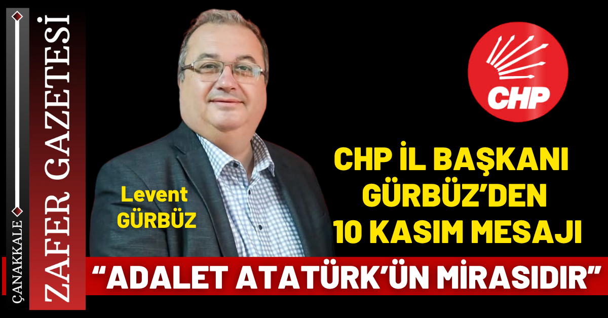 Cumhuriyet Halk Partisi (CHP) Çanakkale İl Başkanı Av. Levent Gürbüz, 10 Kasım dolayısıyla bir mesaj yayınladı.