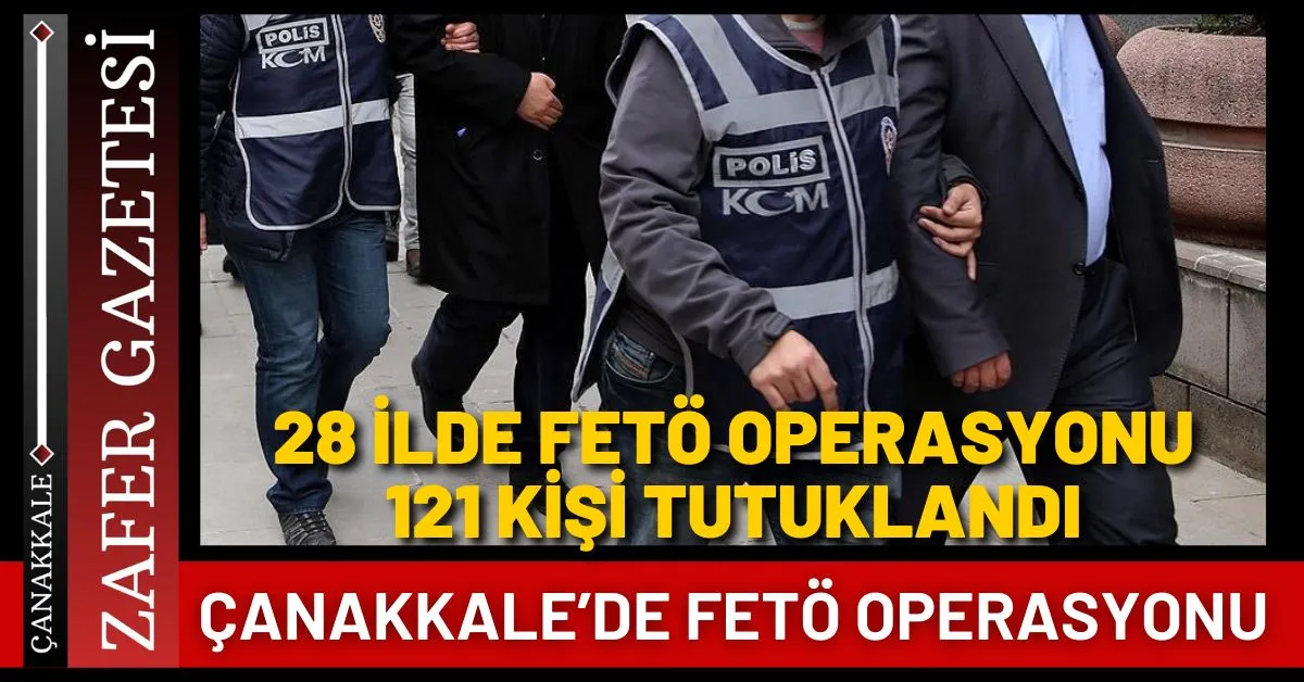 Çanakkale dahil 28 ilde fetö operasyonu yapıldı. Operasyon dahilinde 121 kişi gözaltına alındı. FETÖ’nün askeri mahrem yapılanması, öğrenci yapılanması, adliye mahrem yapılanması ve mahrem yapılanması içerisinde faaliyet gösteren, Örgütün kriptolu haberleşme programı ByLock kullanıcısı olan, Ankesörlü telefonlarla örgüt içindeki şahıslarla haberleşmeyi sürdüren, Sosyal medyada FETÖ’nün propagandasını yapan 121 şüpheli göz altına alındı.