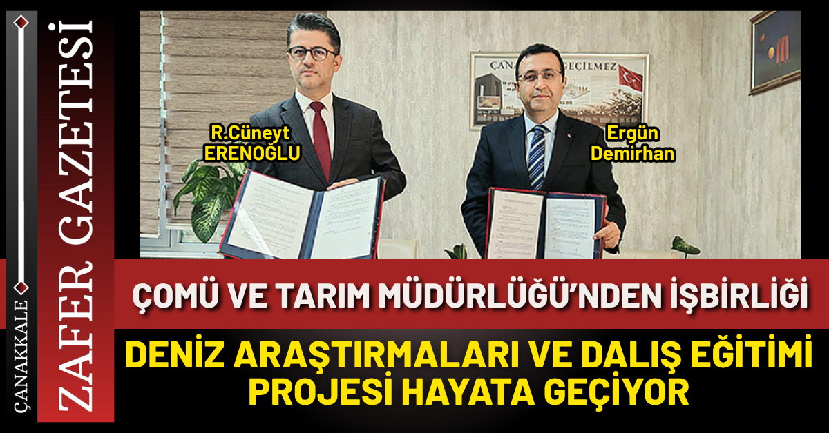 Çanakkale Onsekiz Mart Üniversitesi (ÇOMÜ) ile Çanakkale İl Tarım ve Orman Müdürlüğü arasında, deniz ekosisteminin korunması ve su ürünleri araştırmalarına katkı sağlanması amacıyla “Deniz Araştırmaları ve Dalış Eğitimi” konulu iş birliği protokolü imzalandı.