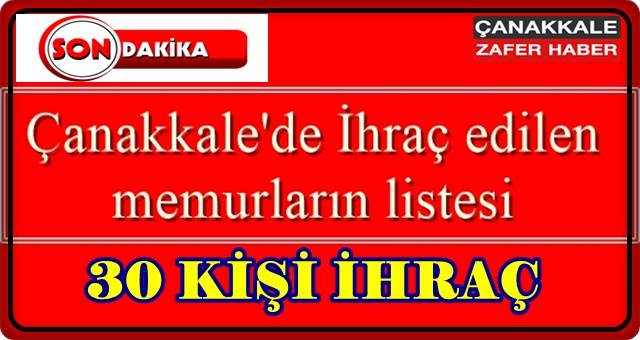 Son Kanun Hükmünde Kararname ile Çanakkale’den de çeşitli kamu kurumlarından 30 kişi ihraç edildi. Çanakkale’de ihraç edilen kişiler şu şekilde:
