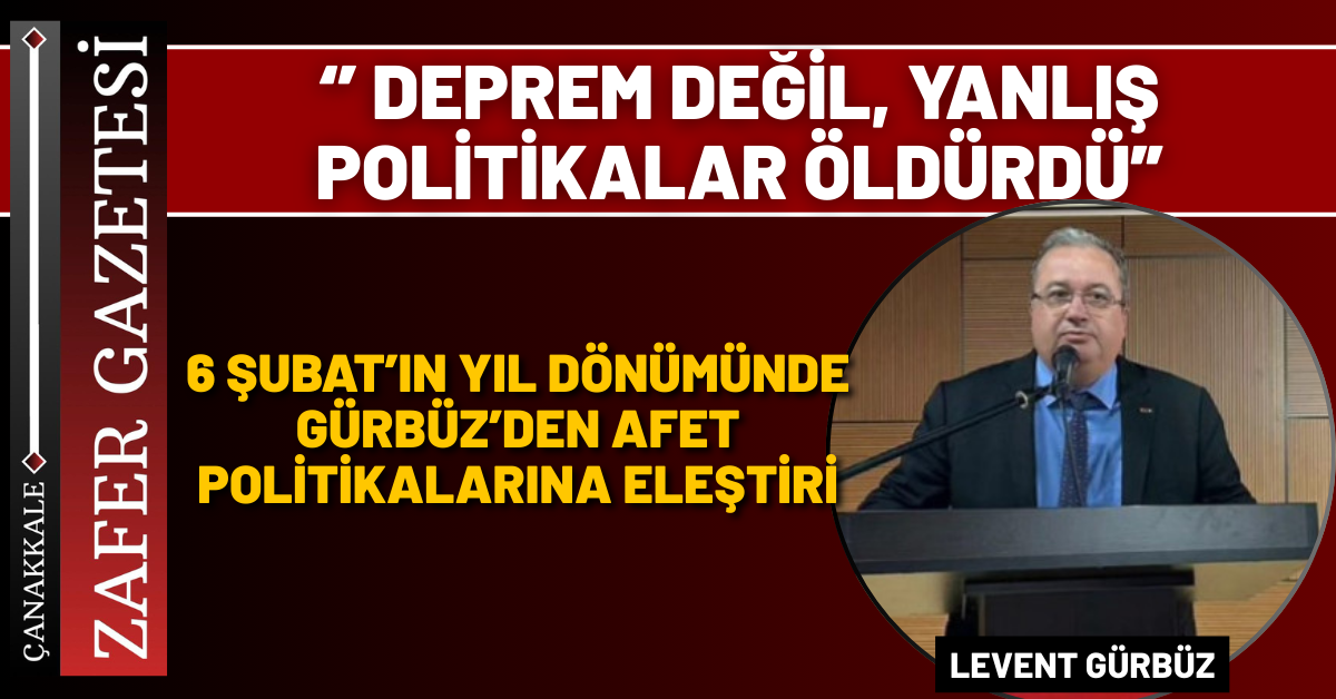 CHP Çanakkale İl Başkanı Levent Gürbüz, 6 Şubat 2023’te Kahramanmaraş merkezli meydana gelen depremlerin yıl dönümü dolayısıyla yaptığı açıklamada, yaşanan felaketin Türkiye’nin afet ve şehircilik politikalarında köklü bir değişimi zorunlu kıldığını söyledi.