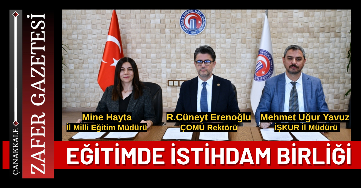 Çanakkale Onsekiz Mart Üniversitesi (ÇOMÜ), Çanakkale Çalışma ve İş Kurumu (İŞKUR) Müdürlüğü ve Çanakkale İl Milli Eğitim Müdürlüğü arasında, öğrencilerin yetenek keşfi ve kariyer planlamasına yönelik iş birliği protokolü imzalandı.
