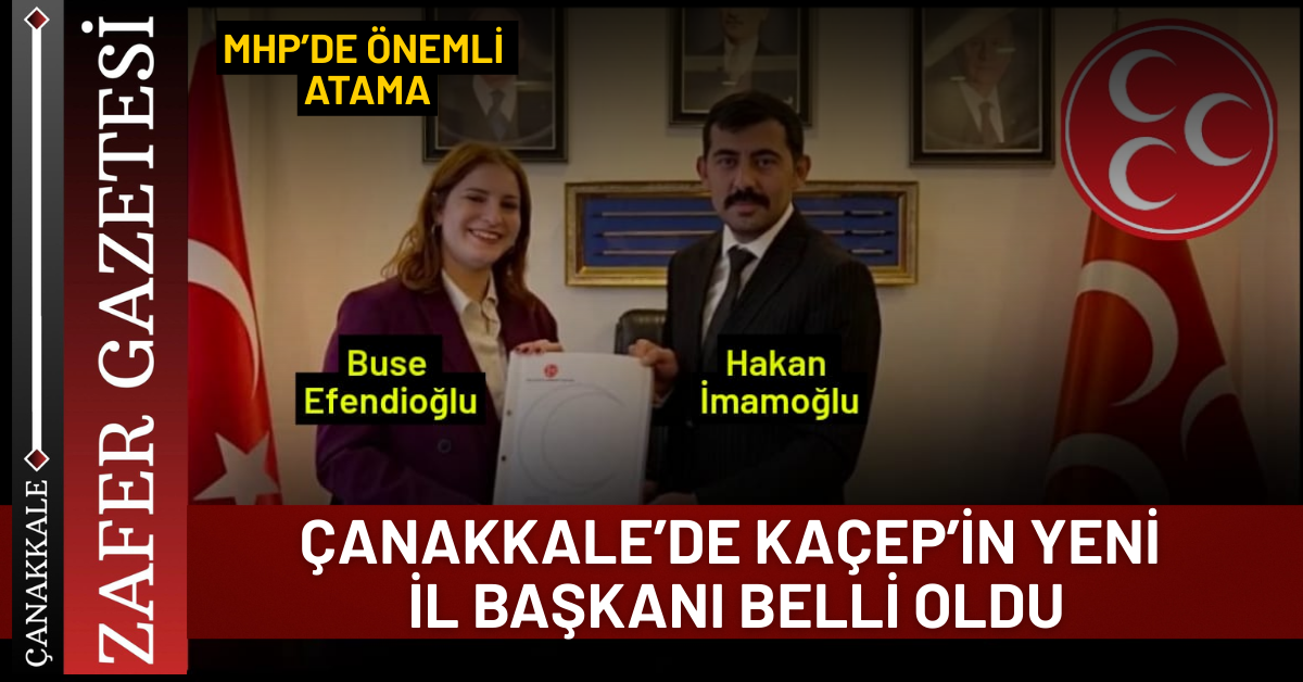 Milliyetçi Hareket Partisi’nde Çanakkale teşkilatını yakından ilgilendiren önemli bir atama gerçekleşti. MHP Genel Merkezi’nin kararı ve İl Başkanı Hakan İmamoğlu’nun onayıyla, KAÇEP (Kadın Aile Çocuk ve Engelli Politikaları) Çanakkale İl Başkanlığı görevine Buse Efendioğlu getirildi. Atama, teşkilat içinde memnuniyetle karşılandı.