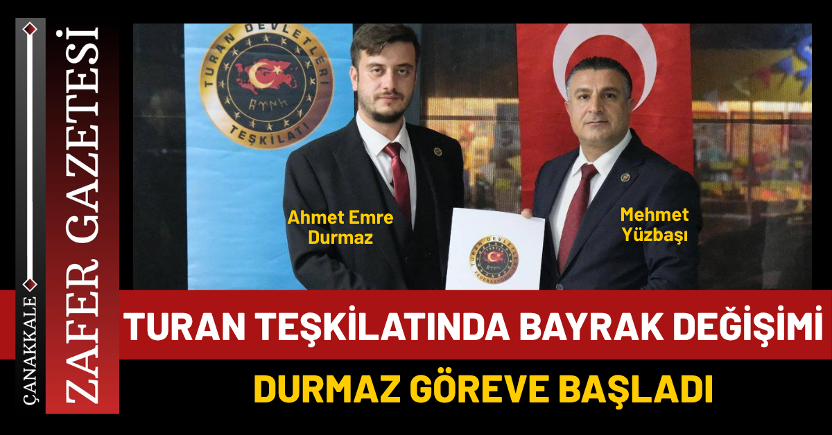 Turan Devletleri Teşkilatı Çanakkale İl Başkanlığında dikkat çekici bir devir teslim töreni gerçekleştirildi. Yaklaşık dört yıldır il başkanlığı görevini yürüten Mehmet Yüzbaşı, görevi genç, dinamik ve vizyoner bir isim olan Ahmet Emre Durmaz’a devretti.